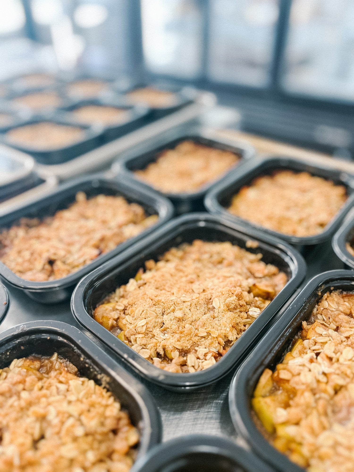 Enjoy a delicious fruit crisp for a perfect, easy dessert. Our from scratch topping is made with real butter, and our apples are hand cut with care.